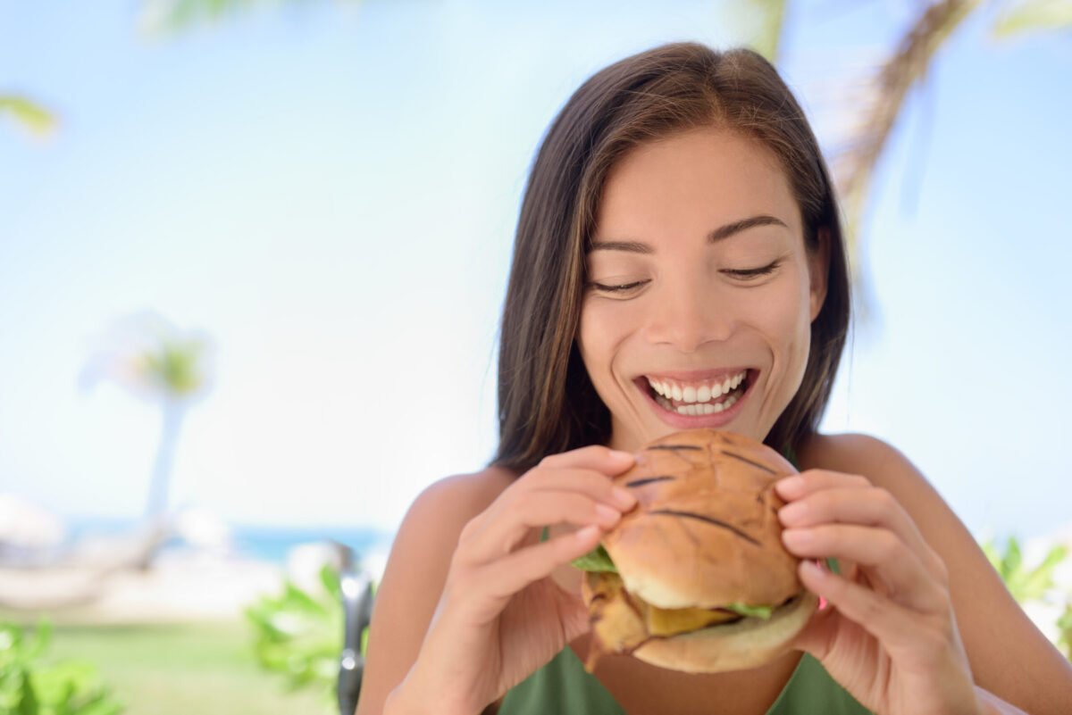 2. Hamburgers: Unless you’re eating one in a fast food restaurant or it’s small, cut it in half before eating it with your hands. Sometimes you might even need to cut the sandwich into fourths, but start out by trying to manage half. Also, you can use your fork to remove some of the tomatoes, onions, pickles, etc., that might be making the sandwich too hard to handle. Place those on the side of your plate, and then eat them with your knife and fork.